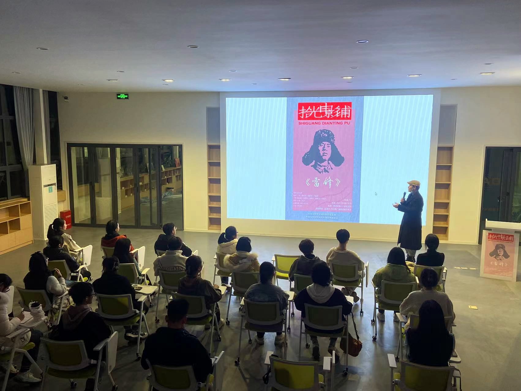 3月4日晚,学生园区特设党支部、学生园区自我管理委员会在学校青李空间多功能厅开展“拾光电影铺”观影活动,本期播放的电影《雷锋》是上世纪60年代拍摄的一部红色经典影片,由19级广播电视编导专业赵泽文同学为同学们进行现场解读与赏析,从时代背景、电影主题以及电影音乐三个角度,对影片展开讲解。这部故事片讲述了雷锋去劳动现场做义务劳动、风雨中护送老大娘回家、为灾区捐款、替战友为家里寄钱等动人故事,激励了一代又一代人的成长。通过观影活动重温经典,进一步激发青年学子学雷锋、做奉献的热情。