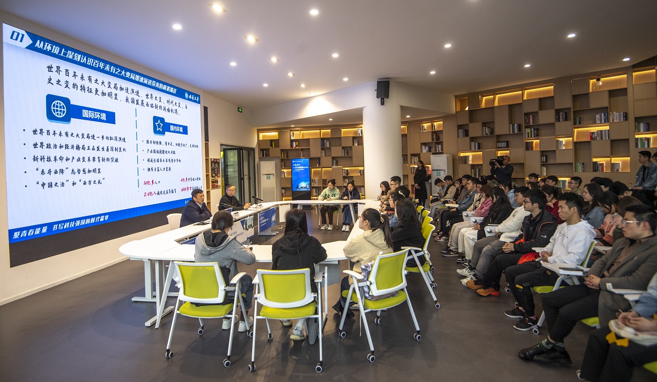 3月28日下午,学校校长张卫国以“聚青春能量 书写科技强国的时代篇章”为题,从“面向中国式现代化、面向世界、面向未来,以全球视野谋定科技发展的中国方案”“系统谋划、一体推进、以身作则,以奋进之笔回答教育何为的时代课题”“锤炼意志、牢记使命、追求卓越,以崇高的历史责任感和使命感贡献强国有我的青春能量”三个方面,为全体同学讲授大思政课。学校党委副书记安春元主持学习活动。