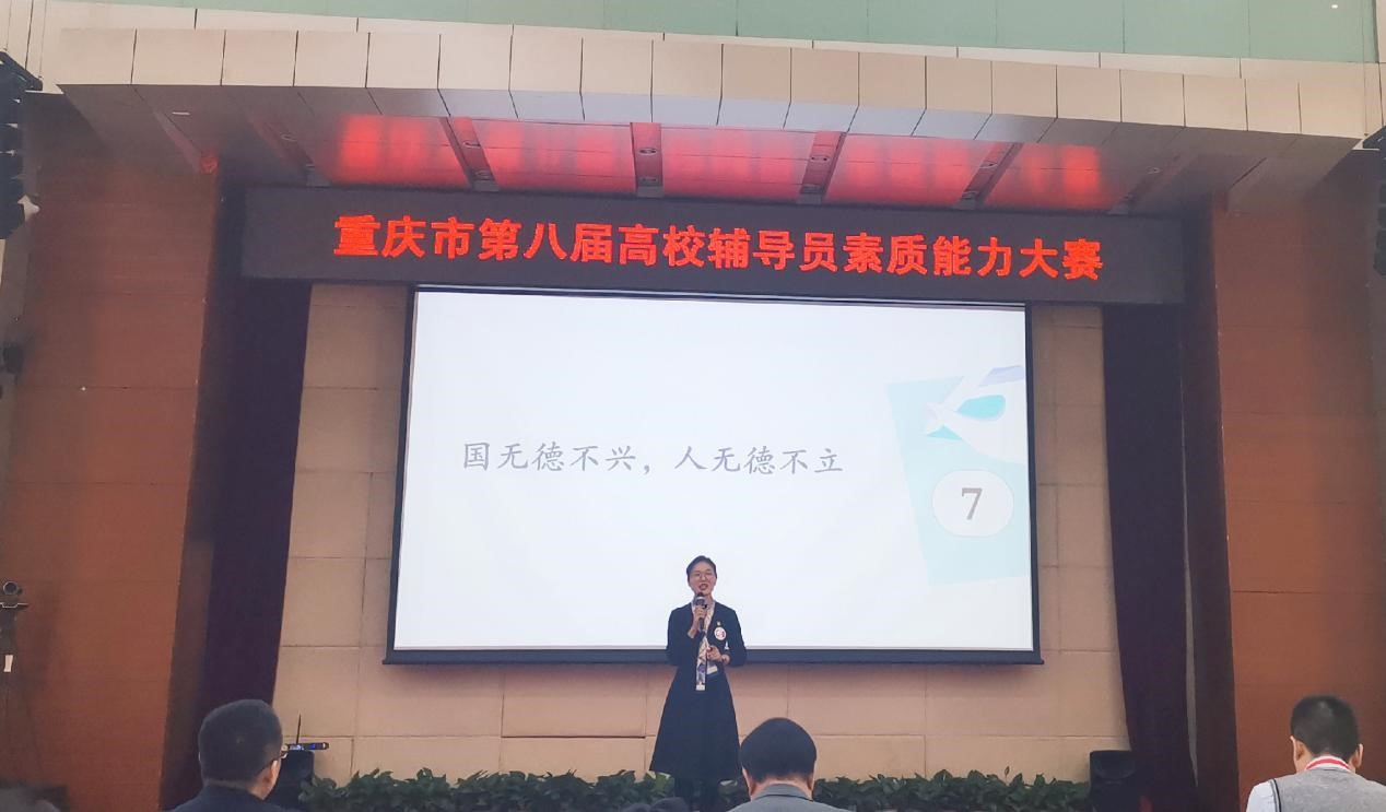 2020年11月18日至20日,由中共重庆市委教育工作委员会、重庆市教育委员会主办的重庆市第八届高校辅导员素质能力大赛在重庆交通大学收官。经过两天的激烈角逐,我校选派的外国语学院辅导员岳莉、马克思主义学院辅导员王珏分别以总分排名第六和第八的成绩获得三等奖。