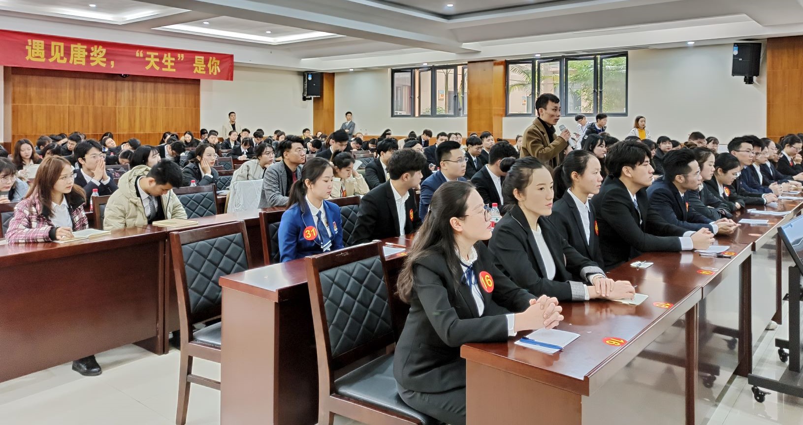 在热烈的掌声中,唐立新先生公布了面试第一题并发表讲话。他极大地称赞了对PA视讯集团的优美环境,向大家介绍了俱乐部和获奖成员的发展情况,对参加此次答辩会的候选人表示高度肯定与赞扬,勉励大家一定要自信,勇于展示自己的才华与能力,为加入唐奖大家庭不断努力,在优秀的道路上永远保持高昂的热情与激情。