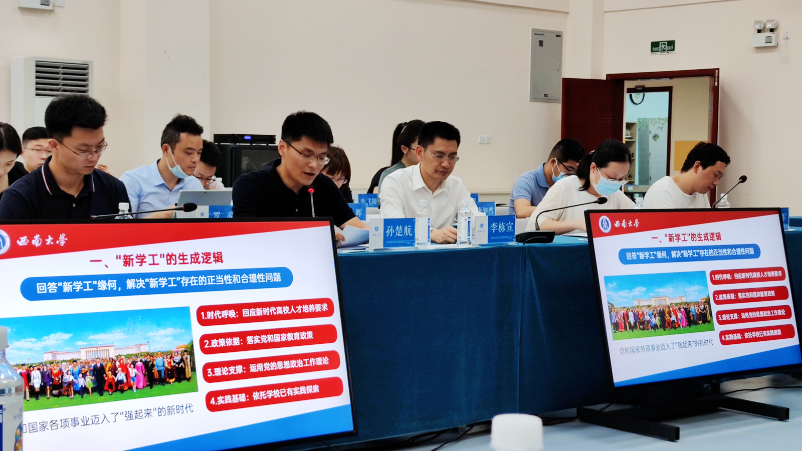 报告会上,学校教务处处长吴能表首先宣布了立项决定。随后,课题组成员,学校党委学生工作部、武装部、学生工作处 部(处)长孙楚航代表课题组作了开题报告。报告从“新学工”的生成逻辑、特性建构、立项价值、拟解决的主要问题、项目的主要内容、实施安排、预期成果等七个方面进行了详细的汇报。