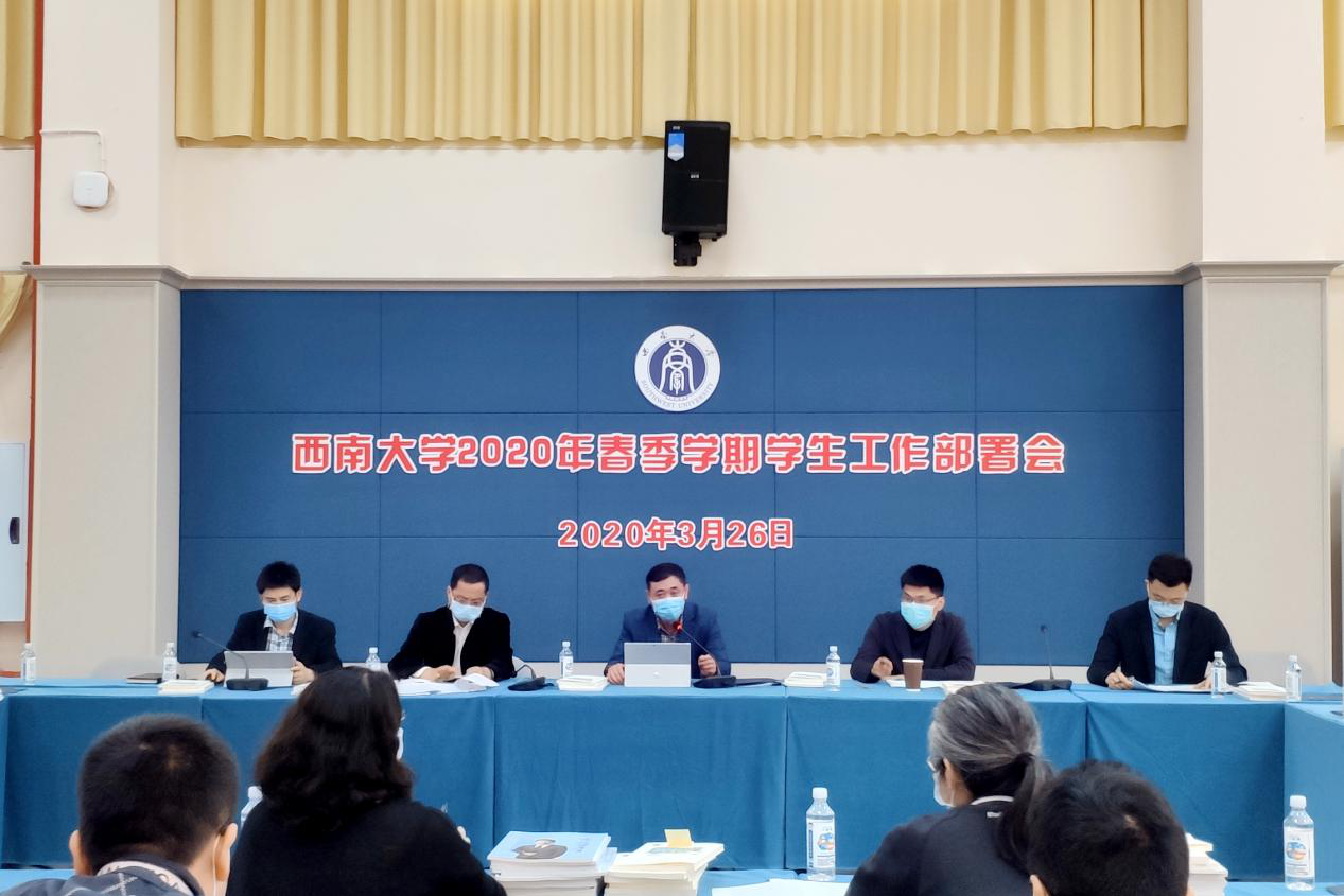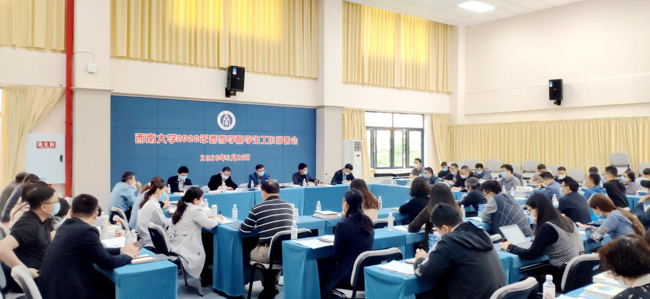 3月26日上午,学校2020年春季学期学生工作部署会在第二学生活动中心420会议室召开。校党委副书记潘洵出席会议并讲话。党委研究生工作部、党委学生工作部(处)、招生就业处、校团委等部门主要负责人,各学院(部)党委副书记参加会议。会议由学生工作部(处)部(处)长孙楚航主持。