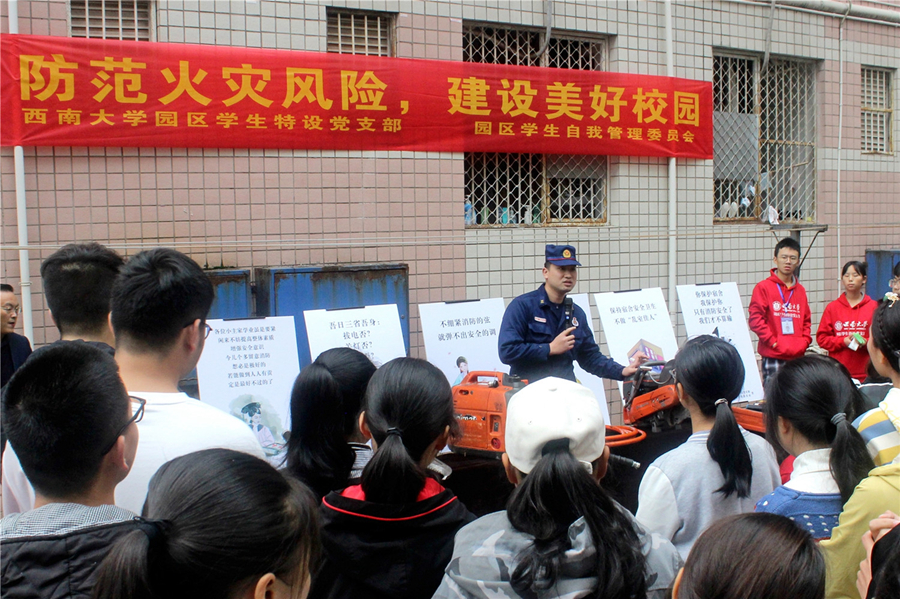 为引导学生树立消防安全意识,提高消防安全防范能力,助力安全、健康、文明、奋进“四个园区”建设,在11月9日全国第29个“消防宣传日”到来之际,学校学生党员示范班、园区学生特设党支部、园区学生自我管理委员会等学生组织通过组织消防安全演练、消防趣味运动会、消防创意宣传等形式,开展了以“防范火灾风险,共建美好校园”为主题的宣传教育活动。