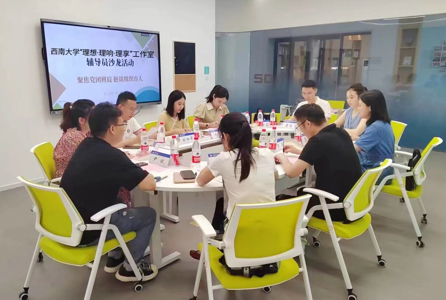 为深入贯彻落实党的二十大精神和高校“十大育人”体系构建,服务学校辅导员队伍提能创优,2023年7月2日,“理想·理响·理享”辅导员工作室在青李研习室A02举办了题为“聚焦党团班寝,摭谈组织育人”的沙龙活动。党委学生工作部副部长、学生工作处副处长罗军、辅导员队伍建设科科长唐知然出席活动,来自音乐学院、水产学院、新闻传媒学院、数学与统计学院、西塔学院的9名辅导员现场开展交流研讨,水产学院党委副书记刘一丹主持活动。