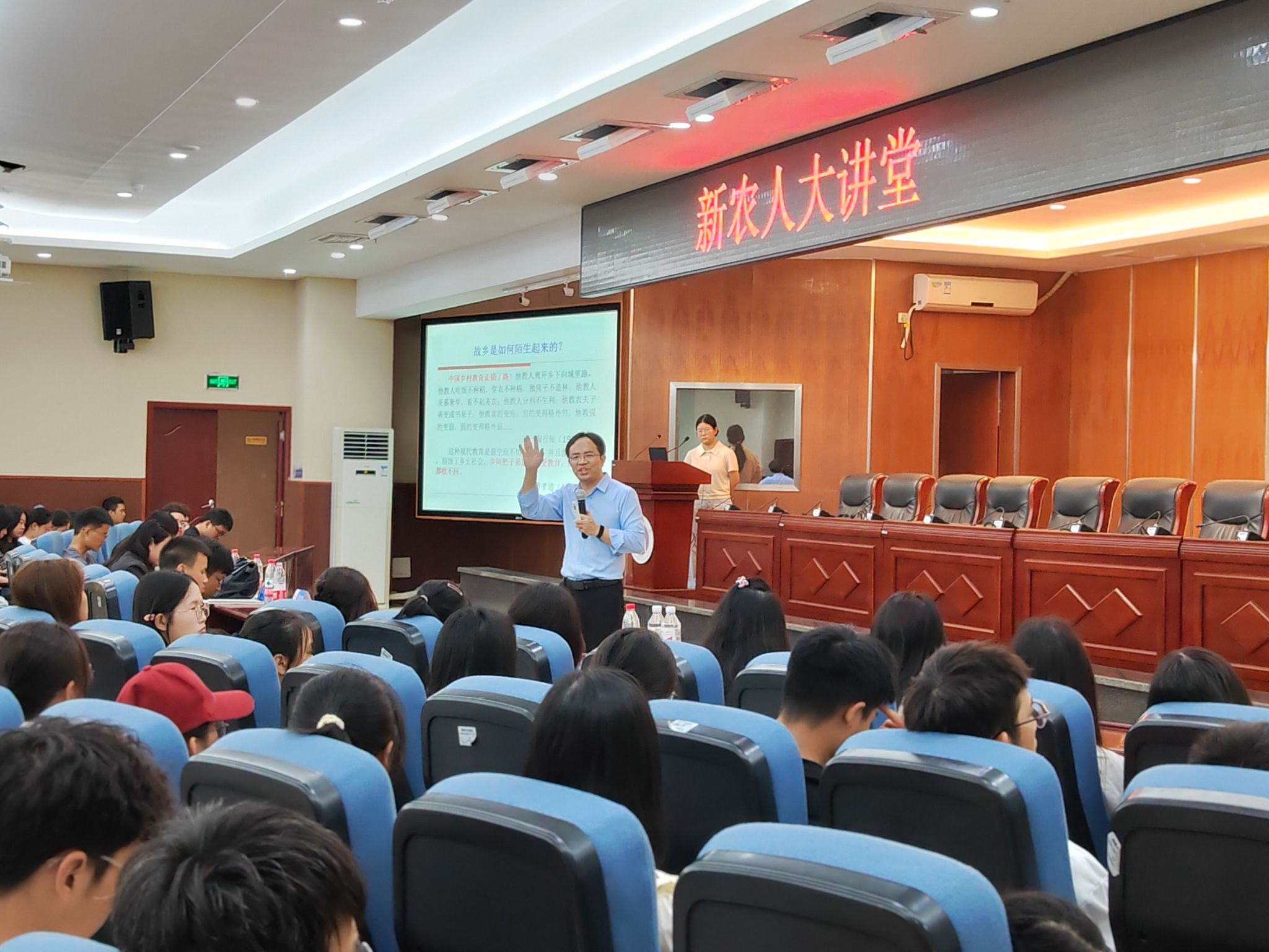 潘家恩教授立足农科新同学对大学生活的向往、憧憬、迷茫、困惑等实际情况入手,以“视角”“视野”两个关键词切入,把握大学伊始的关键时期,在同学们心中播下知农爱农的种子。潘家恩教授面对“Z世代”的青年,不禁对自己二十余年乡村建设的实践经历进行梳理和回溯,指出当下的时代是最好的时代。他以新时代透视百年历史中的乡村建设实践,让同学们反思、审视当前乡村建设的时代困境和时代方位,重新认识“农民”身份和“农村”现状,重新感受“故乡”“乡愁”等词汇的内涵和力量,从而明确“Z世代”新农人的责任、使命和担当。潘教授进而引导同学们思索乡村建设的历史机遇,为乡村振兴锚定“新坐标”和赋予“新可能”。