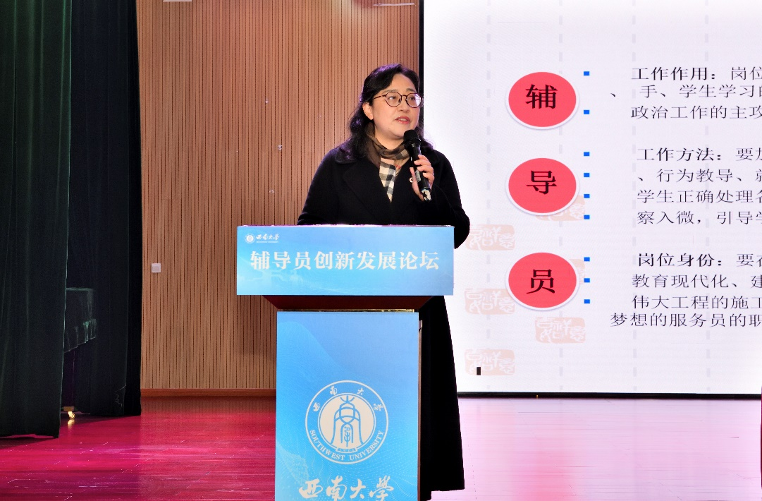 在交流发言中,全国“最美高校辅导员”简敏、马克思主义学院党委副书记罗亮、教育学部党委副书记刘娇、教师教育学院党委副书记陈铮、计算机与信息科学学院 软件学院党委副书记王晖、体育学院团委书记万余、数说青年辅导员创新团队成员高荣蓉等7位老师,围绕辅导员职业信念、数字思政、导学思政、“新师范”创新人才培养、“新工科”人才培养、共青团实践、大学生网络生存现象等热点问题,提出工作思考和谋划方向。