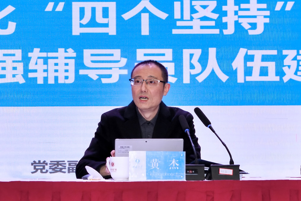 黄杰在辅导员创新发展论坛作首场专题报告。报告中,黄杰对辅导员工作予以充分肯定,提出2024年是辅导员队伍建设年,要“强化四个坚持”,切实推动这支队伍高质量发展:一是始终坚持以人为本,以学生为中心。要在“关心学生、关爱学生”“走近学生、倾听学生”、提升“三力”上下功夫,让学生信赖、信任和信服。二是始终坚持德育为先,贯通人才培养。要深入专业课堂共学、协同专任教师共商、推进学科专业共建,共同提升学院的人才培养质量。三是始终坚持专业为重,淬炼过硬本领。学校保障了辅导员职称、职级、职务和学历“三线一提升”的路径畅通。辅导员要对事业有信心,积极提升数字媒介素养、应急处突能力、调查研究能力等“实战化”能力,从思想作风、工作作风、生活作风维度持续强化作风建设。四是始终坚持实干为要,提升整体效能。要全面推行四步工作法,常态建立重点工作清单,着力构筑闭环落实机制,持续深化关键流程再造,切实推进学生工作法治化。接下来,学校将积极推动高能级学生思政工作新生态构建,加快形成学生工作高质量发展新局面!