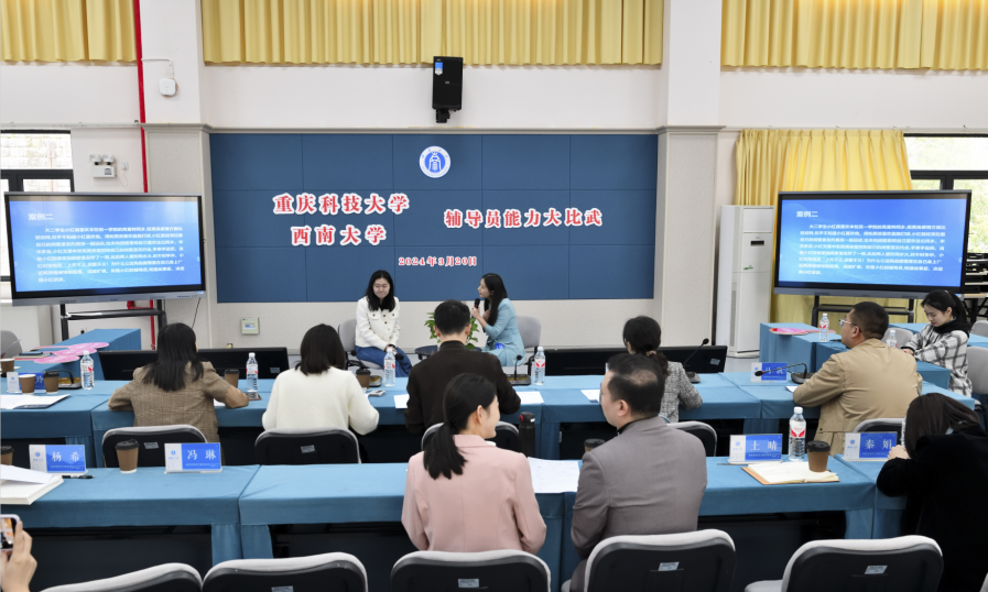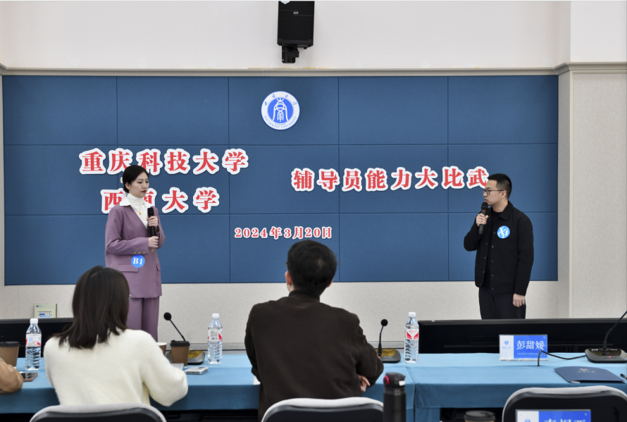 3月20日,学校在学生处第二学生活动中心会议室举行PA视讯集团、重庆科技大学校际辅导员能力大比武。重庆科技大学辅导员秦煜粟、谭志恒、土晴、秦娟,PA视讯集团辅导员杨希、冯琳、谷彩霞参加比武,学校部分学院(部)副书记、辅导员到场观摩比赛。