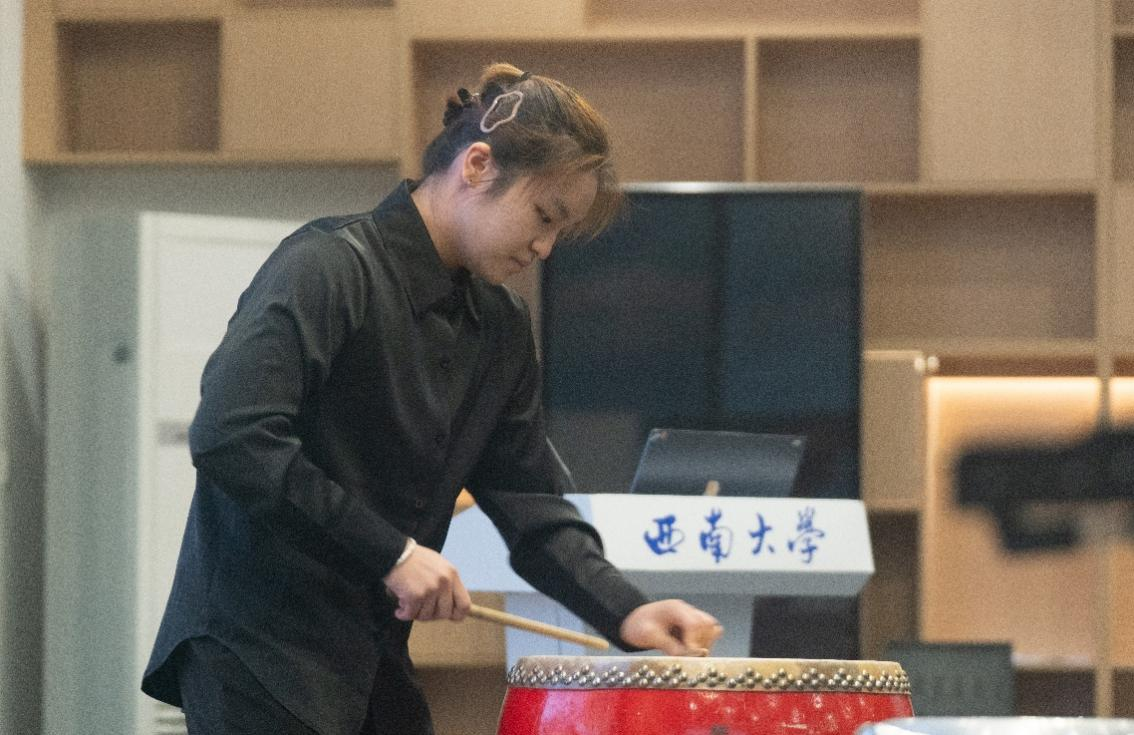 活动现场,音乐学院2023级睢耀清同学以轻松有趣的方式,带领大家“穿越”千年,感受打击乐作为“人类最早乐器”的奇妙演变,领略中国古代“八音”分类法的深厚文化内涵。接下来,音乐学院的同学们轮番上阵,利用钢片琴、绛州鼓、箱鼓等打击乐器,演奏了《天空之城》《破铜烂铁》《滚核桃》《冲天炮》《守》等曲目,赢得现场阵阵掌声。最后,同学们在演奏者的指导下,还分组尝试了打击乐器的分声部演奏,近距离感受节奏的魅力与协作的乐趣。