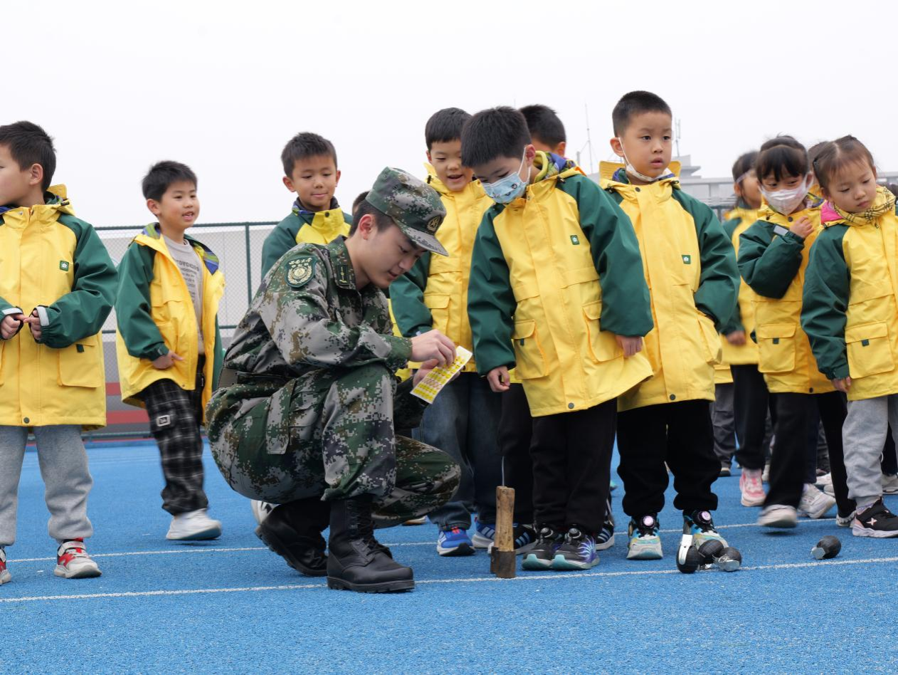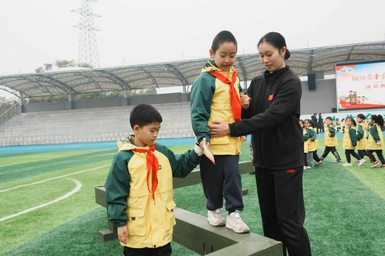 “课堂”进入实践体验环节。在砺剑班和女子国旗班成员的耐心讲解与细心指导下,附小同学们有序分组,开展定向越野、战术体验、战场救护等活动。孩子们既兴奋又专注,化身为“小战士”,在定向越野中锻炼军事思维,在战场救护中学习生命至上的理念,在手榴弹投掷中体会力量与精准,在模拟射击中感悟科技强军。大家认真参与、用心体会,在体验中学习,在挑战中成长。