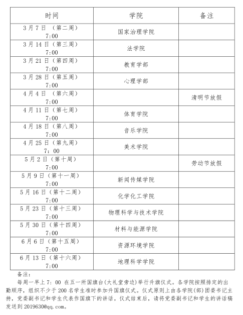 2022年春季学期升国旗仪式安排表
