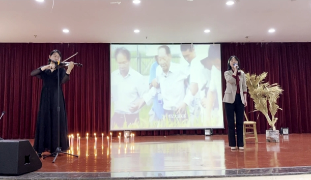 生活中的袁老和音乐有着不解之缘,特别喜欢小提琴。在陈晗同学的小提琴的伴奏下,李晓畅老师满怀深情地演唱袁老最喜爱的歌曲《我的祖国》,致敬袁老的伟大贡献。伴随着承载万千思绪的《送别》,学生代表献上稻穗。