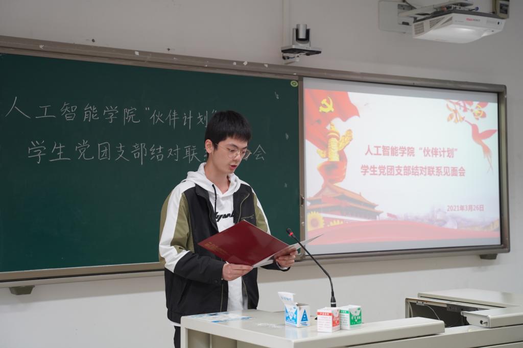 3月26日下午,人工智能学院举行学生党团支部结对联系见面会,启动党史学习“伙伴计划”,充分发挥优秀党员示范带头作用,以党建带团建,推动学院广大青年学子深入学好党史,坚定理想信念,厚植爱国情怀,发奋成长成才,以实际行动献礼建党百年。