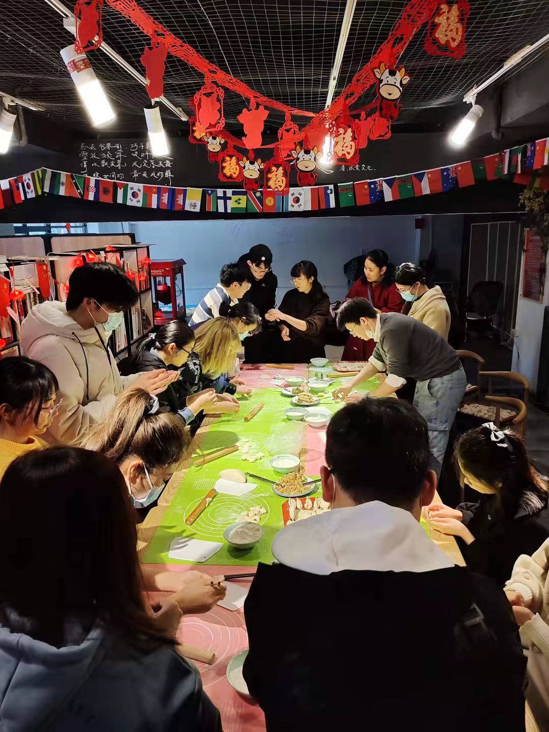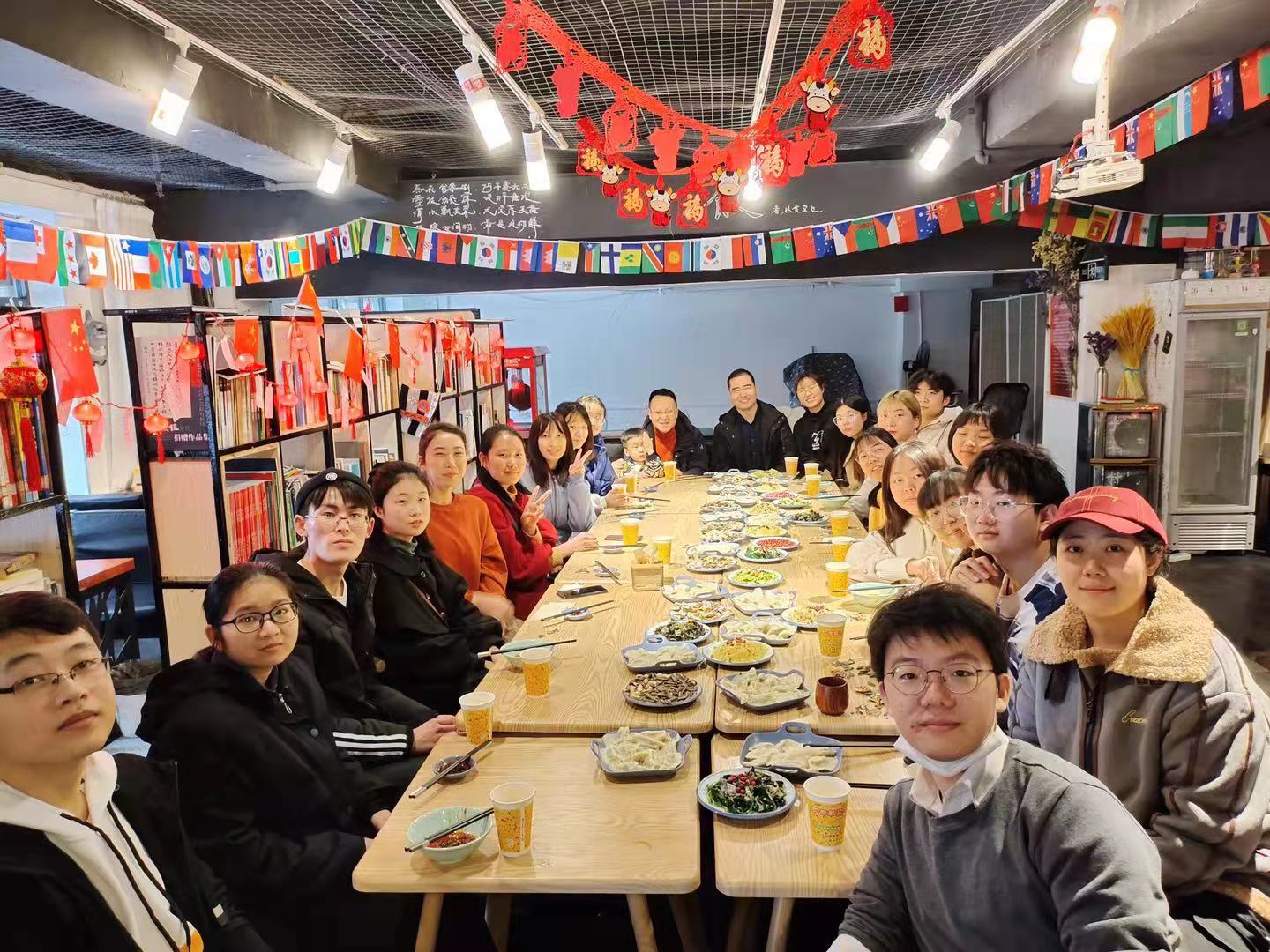 2021年2月9日,文学院党委邓洪波副书记和全体辅导员组织留校学生一起包饺子。此外,现场还有抽福袋、写春联、写福字、猜灯谜等环节,一个个忙碌的身影,一张张灿烂的笑脸,一盘盘热腾腾的饺子,热闹的场景好似在家过年。吃完饺子,同学们分别用自己的家乡话为大家送上新年祝福,少数民族的学生用民族语言写下“新年快乐”。借此次活动,学院希望能让没回家的同学也能过一个暖心年,感受“家”一般的温暖。