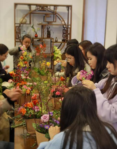 至此,本次女生节插花美学沙龙活动圆满结束。插花艺术历史悠久,千年风雅韵味无穷。本次活动的成功开展体现了我院整合校内外资源,发挥已有的生活艺术教育传统优势,积极探索构建以审美和人文素养培养为核心、以中华优秀传统文化传承发展和艺术经典教育为主要内容的新文科美育课堂。相信同学们通过学习插花文化,可得一室芬芳、品一心欢愉,将在一花一叶的修炼中遇见更好的自己。
