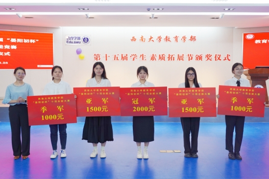 颁奖仪式上,教育学部领导老师代表为演讲比赛、学生课堂教学技能竞赛、“师表杯”才艺大赛、厨艺大赛、趣味运动会、教育学部“十项全能”竞赛中的涌现出的优秀个人和先进集体颁发奖状。