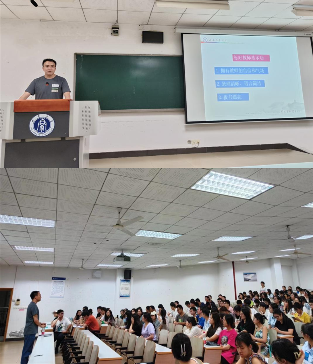 为帮助公费师范生坚定从教信念,明确职业发展方向,提高就业竞争力,为实现高质量就业蓄力赋能,6月25日晚上7点,由党委学生工作部、学生工作处牵头、数学与统计学院承办的“数说育人,发展赋能——‘名师有约’”系列讲座第三场在10教301教室举行。本场讲座邀请到PA视讯集团附属中学教学指导中心主任、原西南师范大学数学系2007届毕业生、中小学高级教师卓忠越老师为同学们开讲。数学与统计学院党委副书记田春荣主持讲座,学院全体大三公费师范生现场参与。