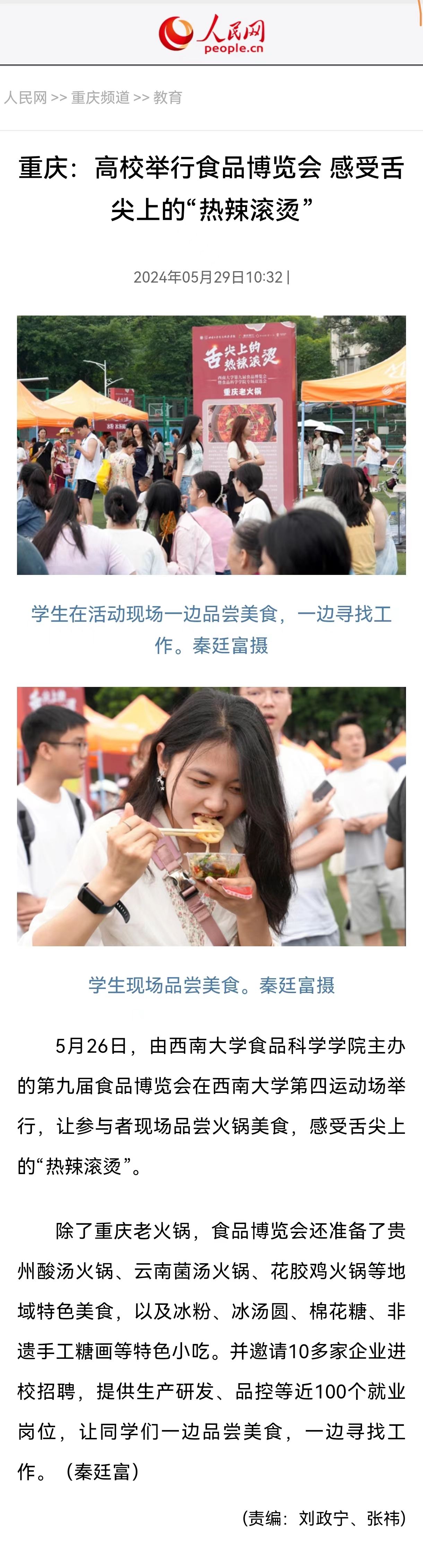 【人民网】 重庆:高校举行食品博览会 感受舌尖上的“热辣滚烫”