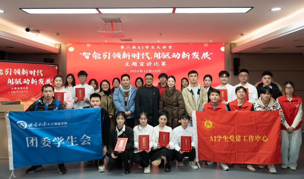 活动伊始,学院院长、党委副书记段书凯致辞,他强调自党的二十大以来,党中央将教育、科技、人才放在优先发展的战略地位,而人工智能是新一轮科技革命和产业变革的重要驱动力量,对中国式现代化进程有着深厚的意义。希望同学们通过此次比赛深刻领悟党的二十届三中全会精神,在知行合一中展现出西大AI青年的卓越风采。