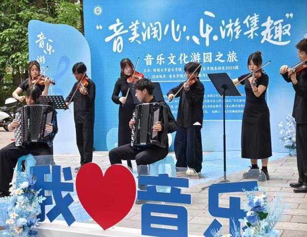 据悉,本次游园活动由音乐学院本科生2023级承办,活动以轻松趣味的方式,融合乐器知识学习、音乐与舞蹈鉴赏、乐器教学体验、音乐心理疏导于一体,围绕认知美、感受美、实践美、塑造美四个层面开展活动,为全校师生打造了一个沉浸式的音乐文化户外体验空间,让音乐美育的种子在校园中生根发芽。