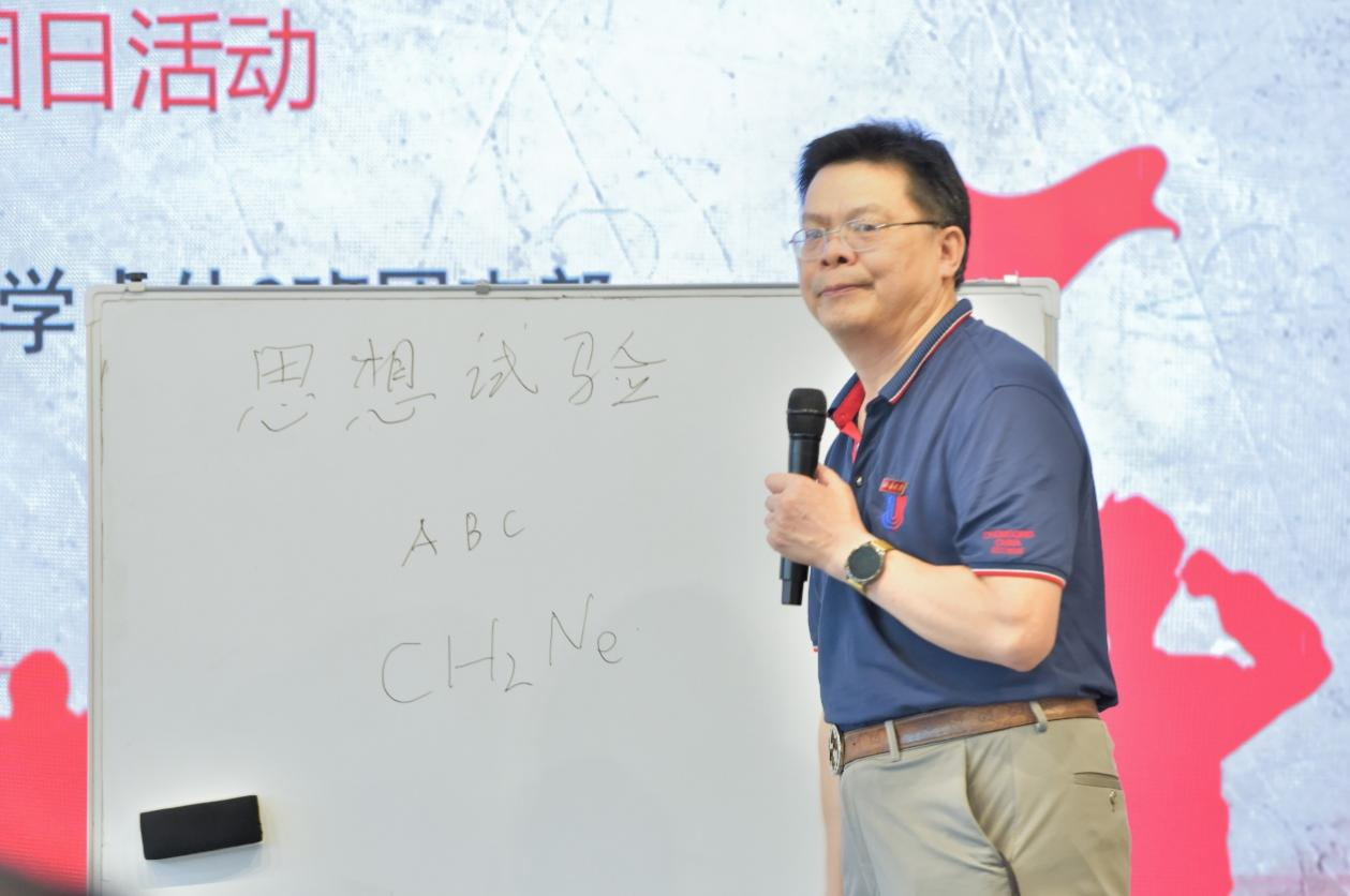 黄承志教授特别设计了一个新颖的新药合成思想实验,从Good Conduct(行为举止)、Good Habit(习惯)、Good Health(健康)、No enemy(不树敌)四个维度,引导同学们合成寓意深刻的人生“新药”——“亚甲基氖(CH₂Ne)”,黄老师将价值引领与专业启迪融于日常交流,展现育人力量在学生社区场景下的独特魅力。