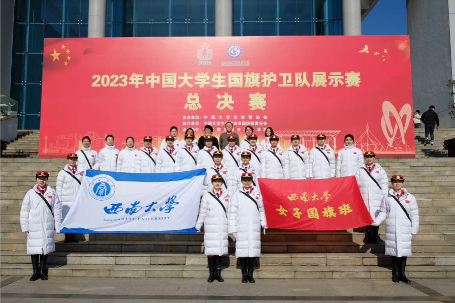 大赛以中国人民解放军三军仪仗队国旗护卫队升降国旗相关规定及《队列条例》为基础,是目前为止我国影响力最大、水平最高、竞争力最强的高校学生国旗文化赛事之一。来自北京、浙江、湖南、四川、广东等13个省市的29所高校代表队600余名运动员参加本次大赛。赛场上,学生女子国旗班队员们以饱满激扬的气势、整齐利落的动作、铿锵有力的步伐展现出西大学子高昂的精神面貌和高水平的训练成果,用汗水和热血履行“请党放心,强国有我,护旗有我”的铿锵使命,生动诠释了新时代西大学子的责任担当。