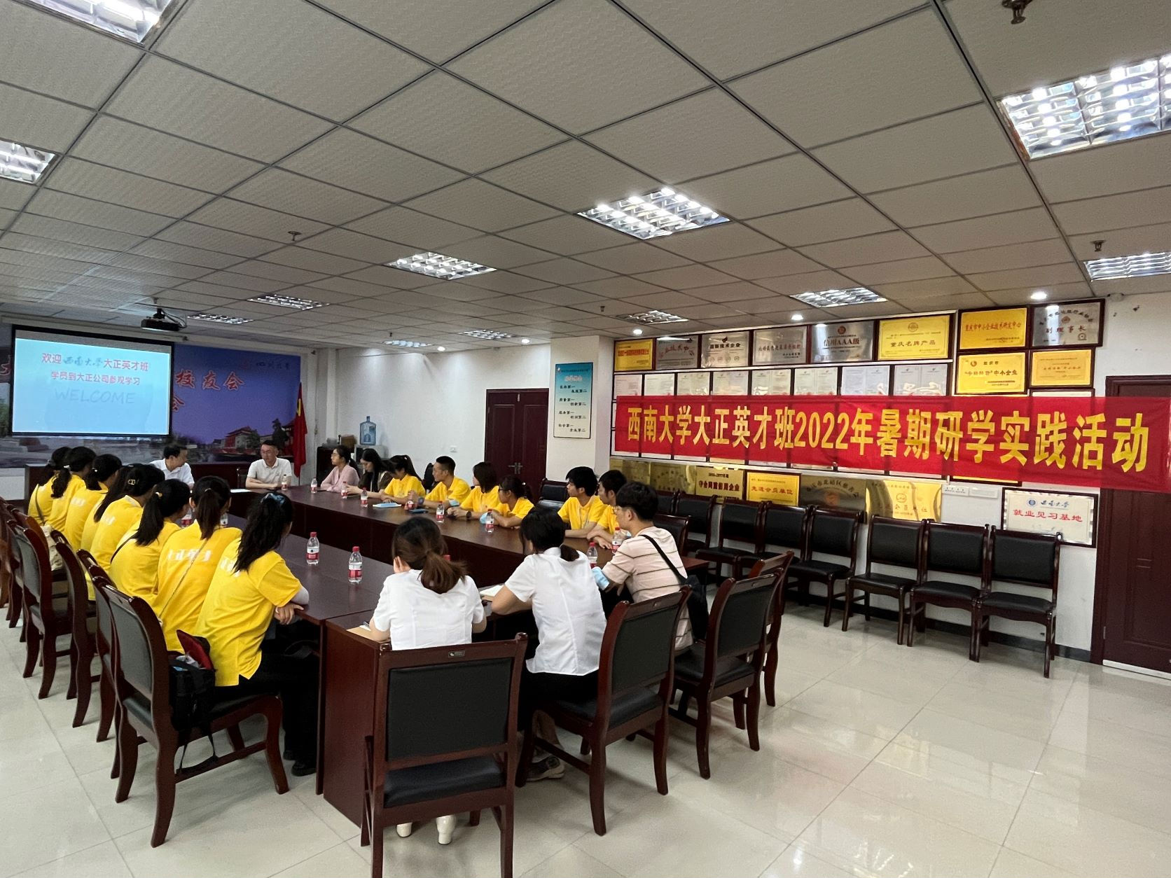 研学实践团首站前往大正集团参观学习,重庆市大正仪表股份有限公司董事长周密亲自接待并为同学们现场讲解。周董事长带领大家逐一参观了下料区、生产加工区、装配区和办公区,同时分享了自己将大学期间的专业知识应用于公司生产实践的生动案例,鼓励大正英才班学生努力学习科学文化知识。“35年只做一件事情”是周董事长成功的秘诀,他希望大正英才班学生树立正确的世界观、人生观和价值观,仰望星空、脚踏实地,成为对社会对国家有用的人才。