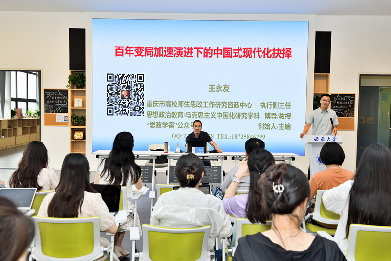 6月11日,学校在青李空间A11报告厅举办2024年“学行”辅导员骨干研修班开班仪式暨首场理论学习,邀请重庆市高校师生思政工作研究咨政中心执行副主任、马克思主义学院教授王永友作专题讲座。党委学生工作部主要负责人、全体研修班学员等40余人参加。开班仪式由党委学生工作部部长许克松主持。