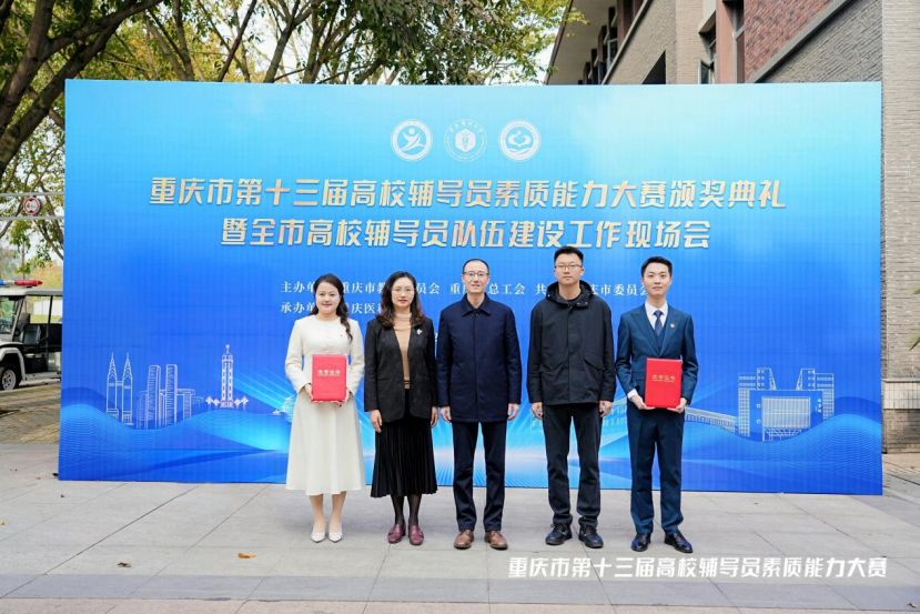大赛颁奖典礼暨全市高校辅导员工作现场会上,教师教育学院陈铮同志主持建设的“师元先锋”工作室获重庆市辅导员名师工作室授牌,马克思主义学院罗亮同志主持建设的“梦想创客”工作室获重庆市辅导员工作室授牌。
