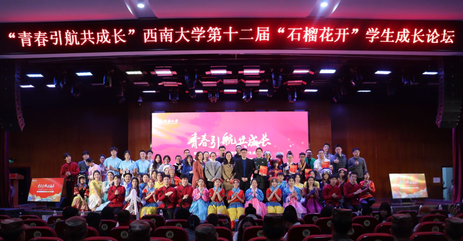 活动在舞蹈《和谐颂》中圆满落幕。第十二届“石榴花开”学生成长论坛第一期论坛就此告一段落,更多优秀的民族学生代表还将作为主讲人,在北碚校区第二期及荣昌校区论坛上,分享他们的青春成长故事,与各民族同学相互交流,共同进步。